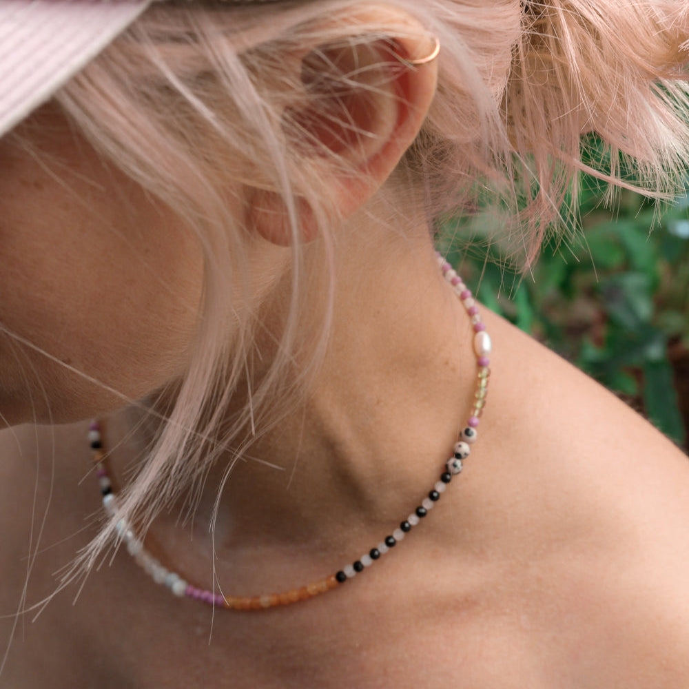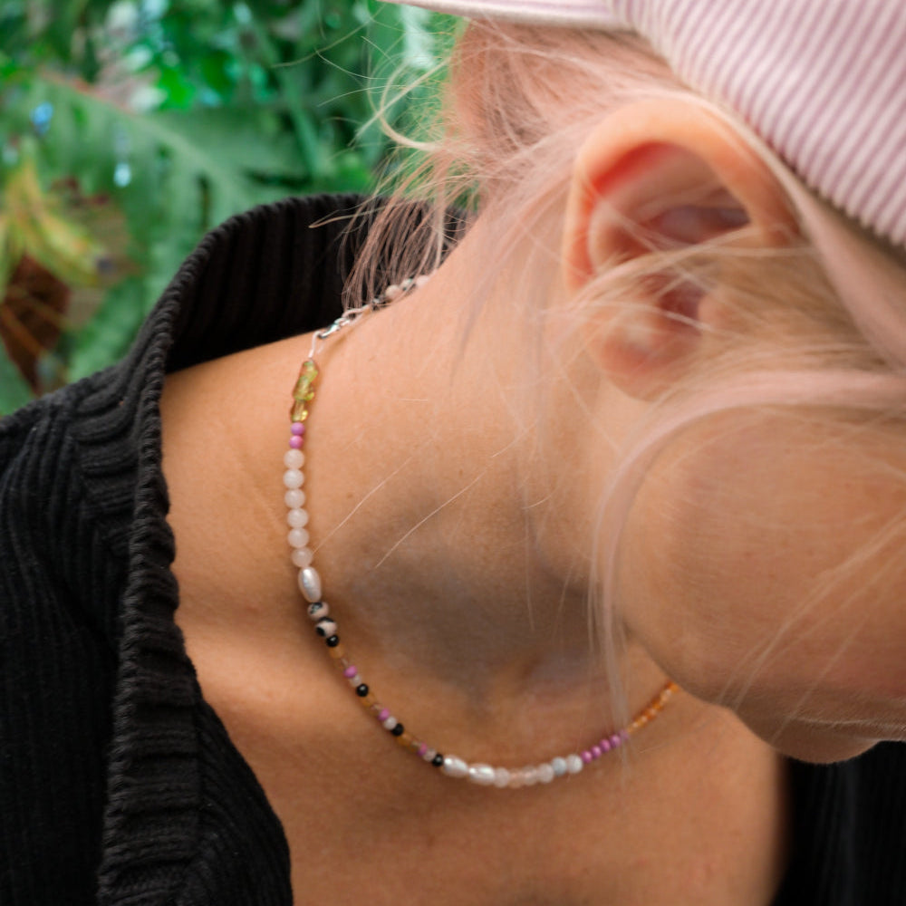 Die Edelsteinkette ist ein zauberhaftes Schmuckstück aus unserer Kollaboration von Candrakala x Ocean & Tides.