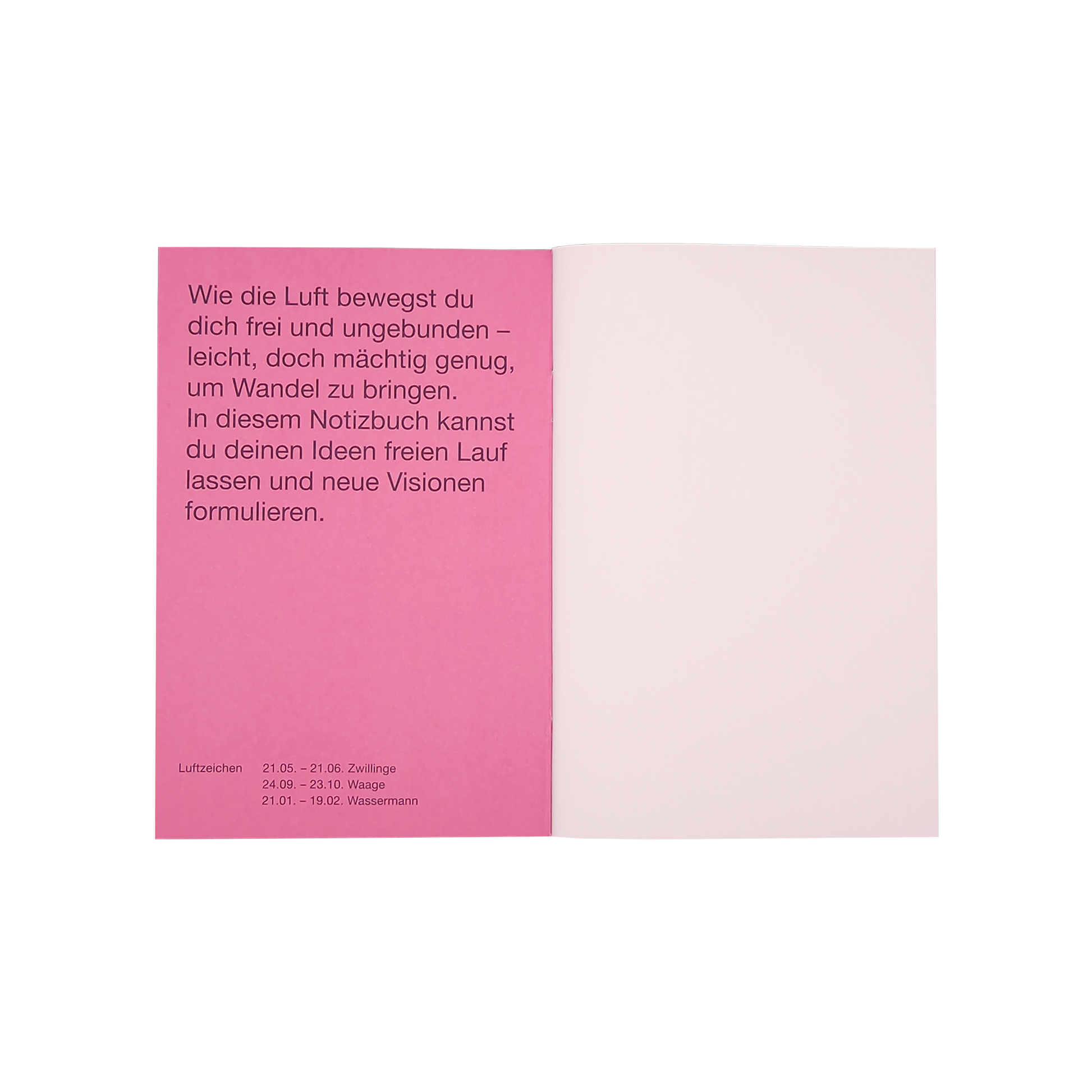 Unsere Elemente-Notizhefte greifen die Qualitäten von Erde, Wasser, Feuer und Luft in Form und Gestaltung auf – als Raum für Gedanken, Ideen oder Intuitionen.